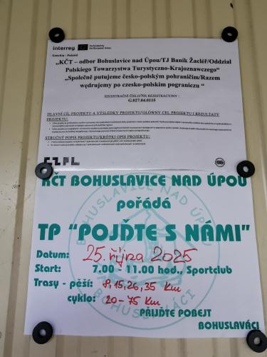 Na akci dorazilo do Bohuslavic nad Úpou 112 turistů z Čech a Polska. Za střídavého počasí (od sluníčka až po deštík) absolvovali připravené trasy a potom společné posezení v klubovně na hřišti.